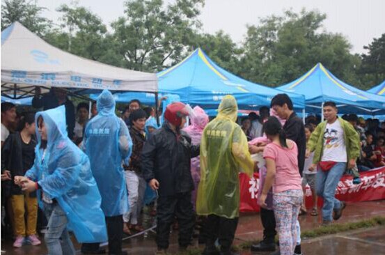 分发雨衣、维持摩迷秩序…等待开场的过程并不枯燥,反而因为雨天,充满了浓浓的温情.