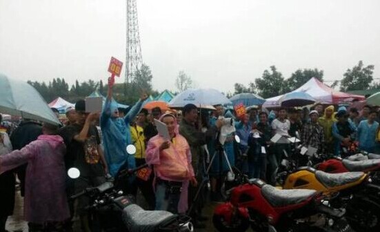 签到板上写满了热情摩友的签名,雨还在下,现场早已水泄不通.
