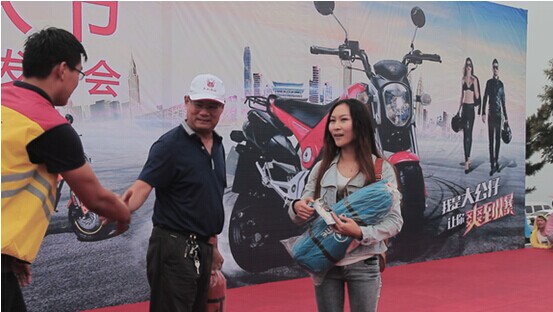 不是每个人都能有幸成为幸运儿,现场购车交500抵1000却是实实实在在的让惠于每个人.让每位欣赏大公仔的摩友都能以最实惠的价格拥有它,于津沙摩托而言也是一种幸福.将钥匙交到首批订购用户手上的过程,是一种心意相通的感激和信任.