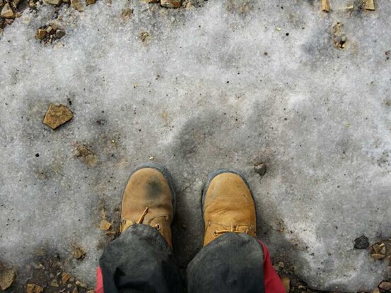 寒风迎面吹来,脸颊如刀割般疼痛. 海拔相对高的山口地区有积雪和暗冰,除了小心慢行别无他法.