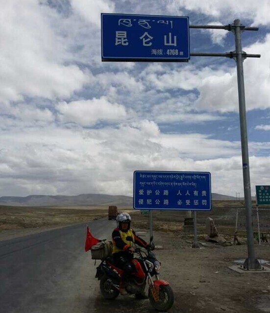 一个多小时后,小车艰难地爬上了海拔4767米的昆仑山口。山口的风吹得人站立不稳,但骑士们心里充盈的,是征服的喜悦.