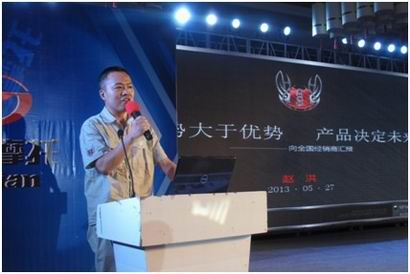 随后,天地游侠系列的规划者、津沙摩托总经理赵洪,向到场经销商,作了“趋势大于优势、产品决定未来”的汇报。这几年来,赵洪对天地游侠倾尽全力,并成功研制出来一系列车型,但这仅是一个起点。赵洪幽默地说道,本次会议,只是天地游侠一年级小学生报到,可能会有很多不足,也希望各位“家长”尽心指导、有问题大声说出来。只有这样,天地游侠才有可能念到初中、高中、大学甚至博士后。