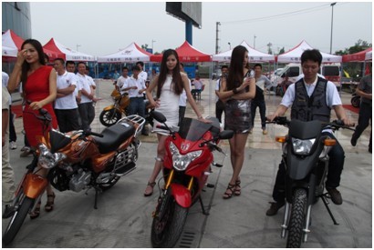 在体验店外,一场大规模文化骑行活动正在进行,除了有美女车模现场亮相,还有特技车手进行表演,最后,经销商们纷纷上车试骑,亲自感受天地游侠铁骑带来的魅力。