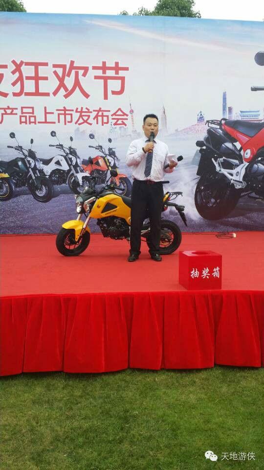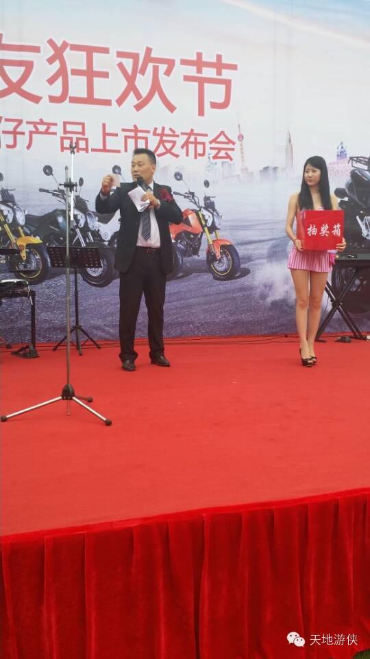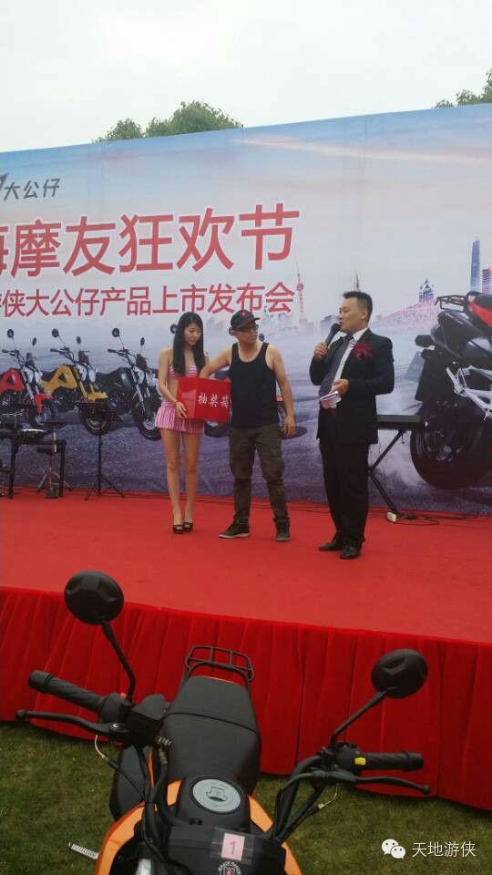 在摩迷朋友们的欢呼声中,津沙摩托总经理赵洪信步上台,代表主办方对摩迷朋友们的到来表达了诚挚的欢迎和感谢。伴随着摩迷朋友们的惊呼,大公仔也终于华丽转身,显示出了其“庐山真面目”和“身价”。