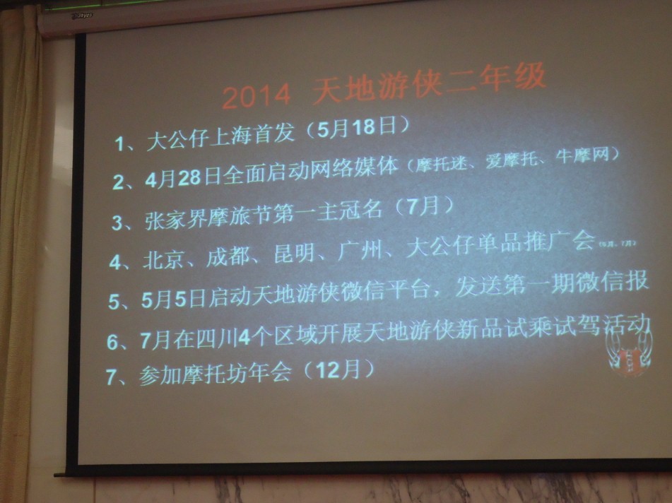 本次会议主要研讨了我公司于经销商2014年战略与营销目标,届时我公司将有拳头型产品上市,最快将近月推出。并联合经销商与互联网各大媒体同时上线,将为我公司2014年战略铺设高速“铁路”。并实现全方位覆盖产品链。将对未来铺设O2O平台而准备。完成我公司线上线下互动操作,Office办公营销与推广,将来必然成为与商家互动友好共赢模式。